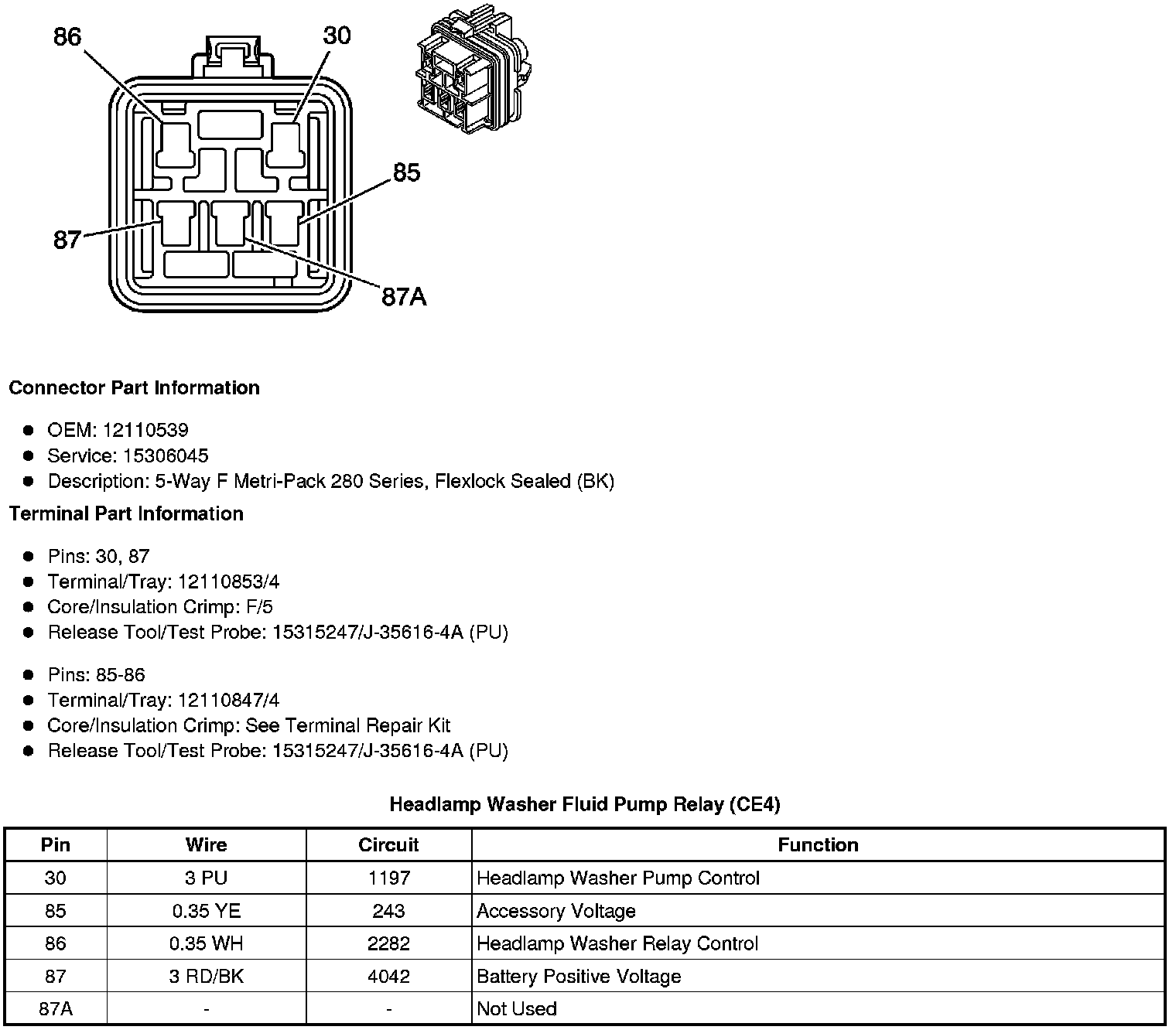 Headlamp Washer Fluid Pump Relay (CE4)