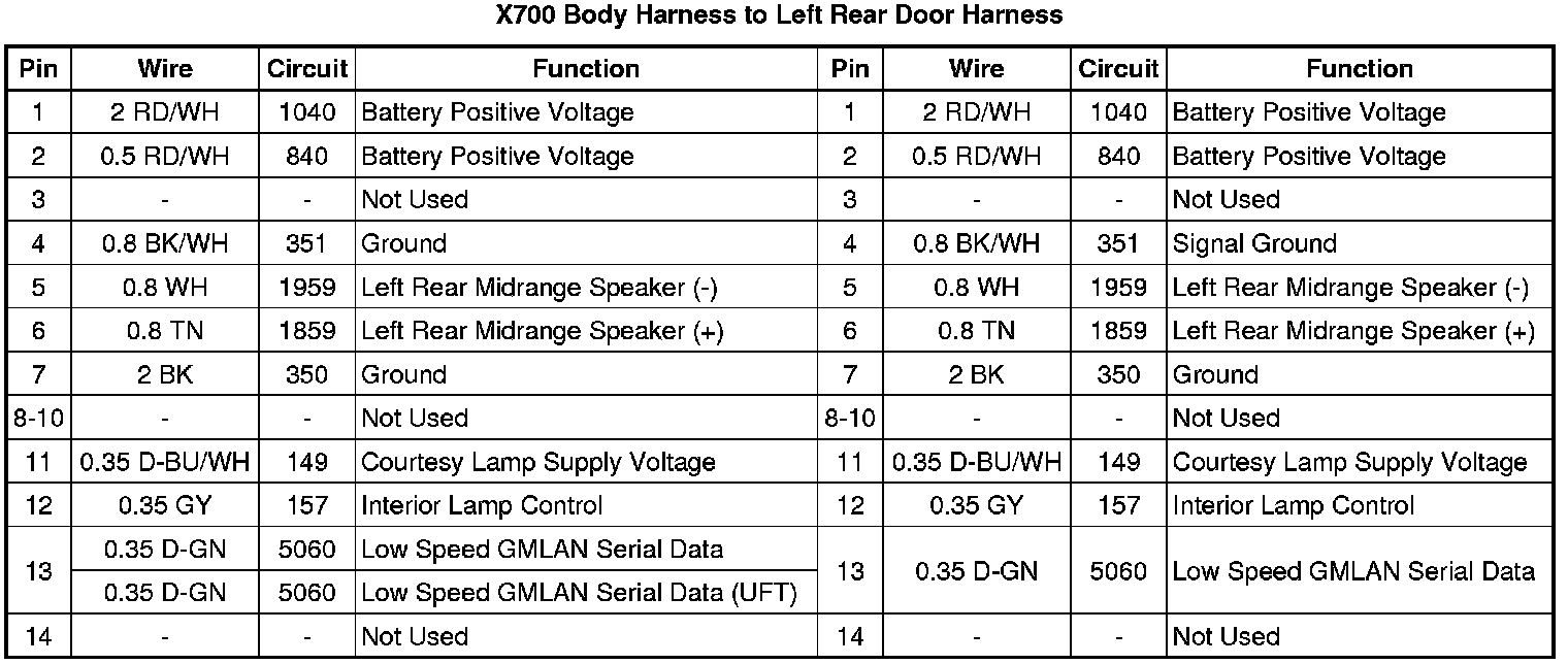 X700 Body Harness to Left Rear Door Harness