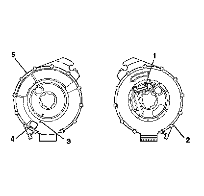 2. If the front (5) of the SIR coil has a centering window (4), and on the back side (2) a spring service lock (1), perform the following steps: