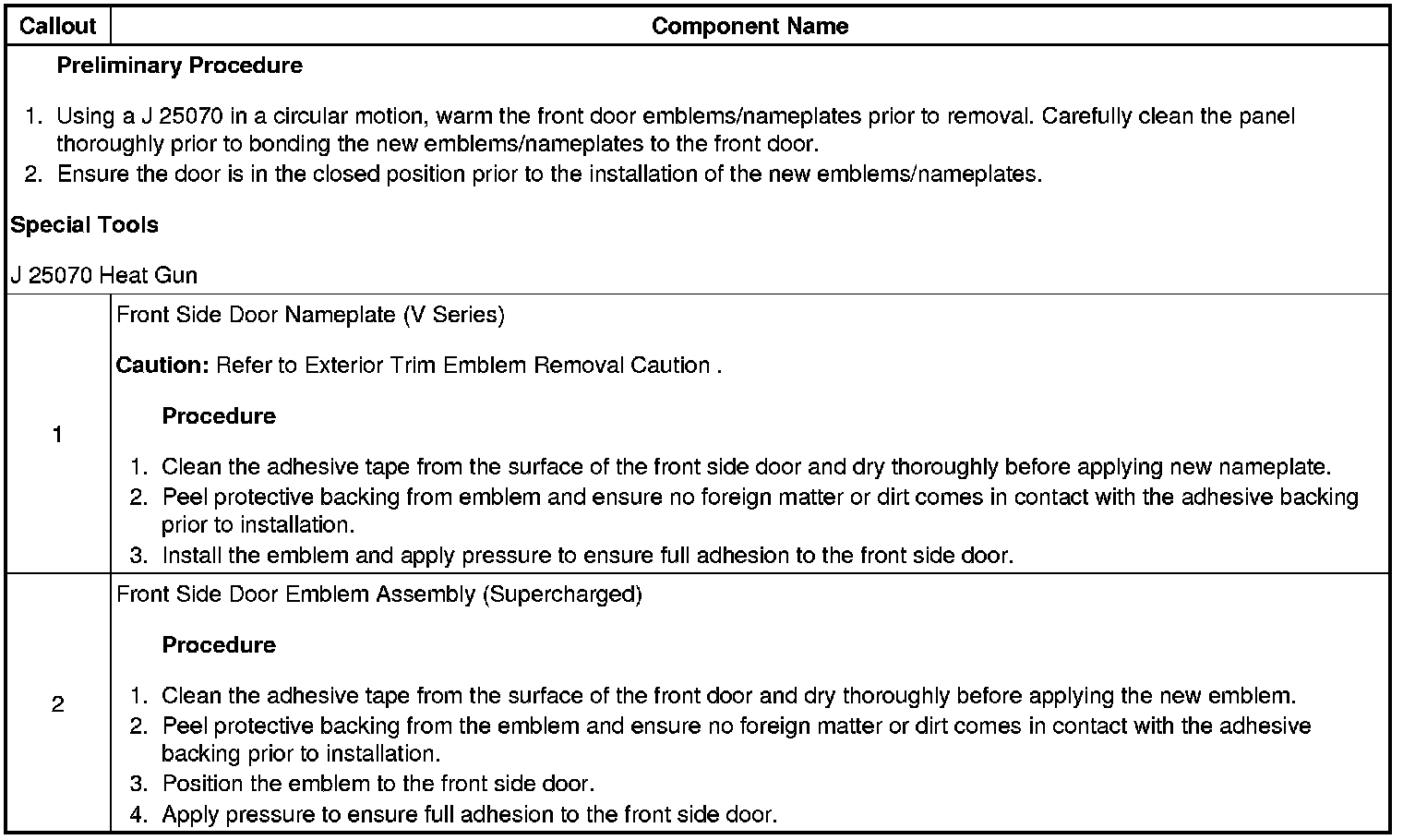Front Side Door Emblem/Nameplate Replacement (STS-V)