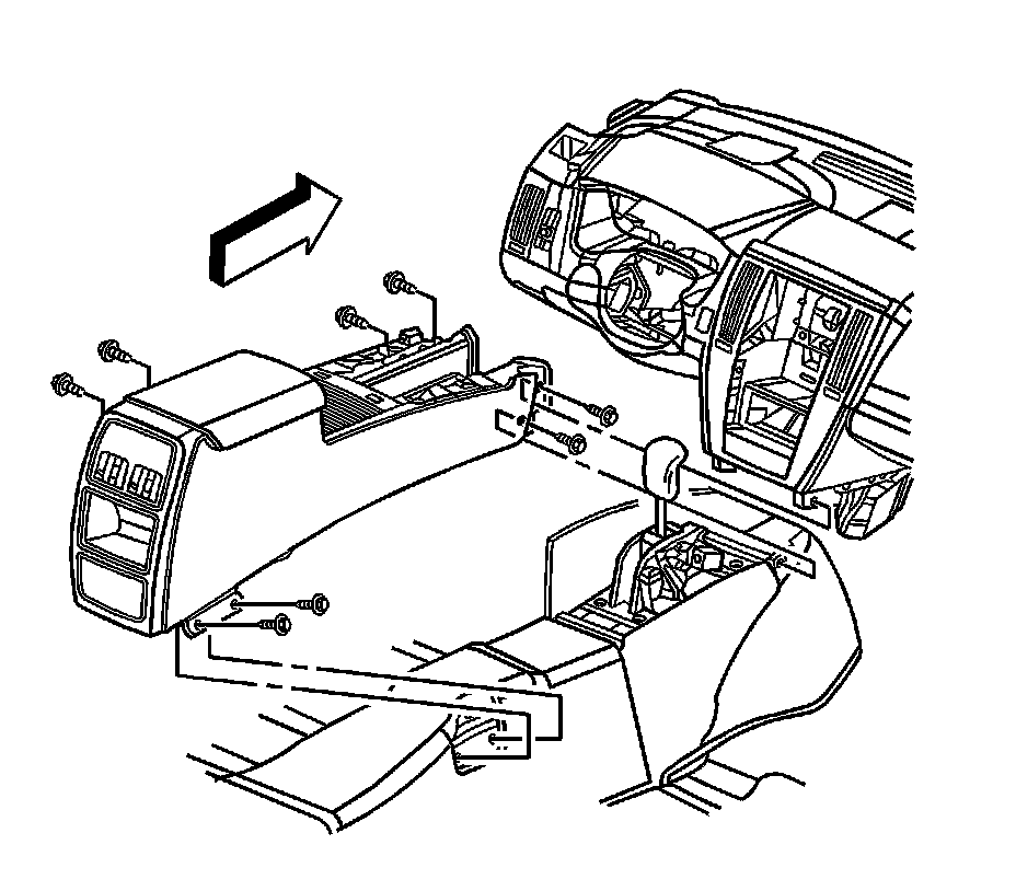 1. Remove the upper console trim. Refer to Front Floor Upper Console Trim Plate Replacement (Service and Repair).