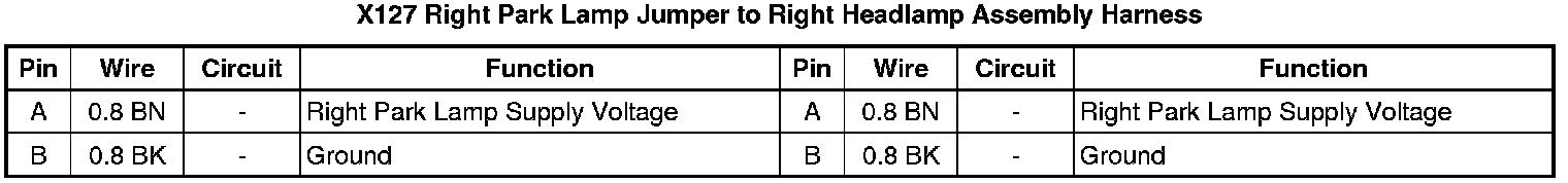X127 Right Park Lamp Jumper to Right Headlamp Assembly Harness