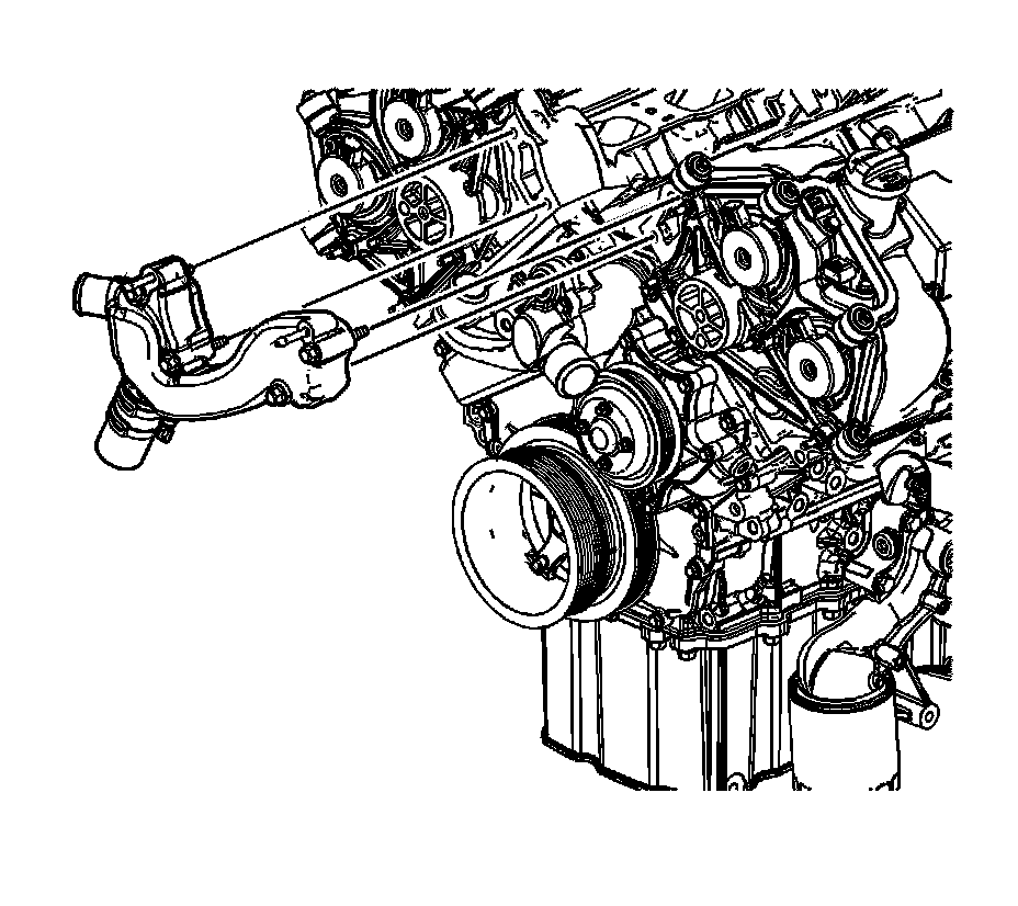 1. Place the water outlet housing in place while fitting the bypass hose to the engine front cover.