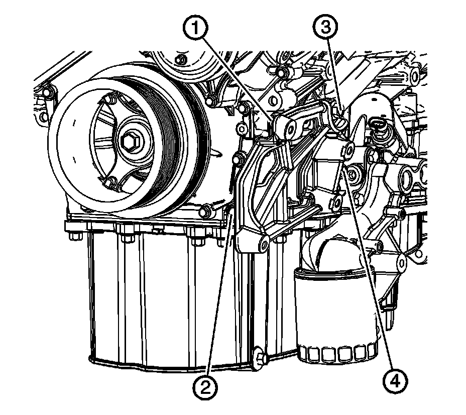 4. Tighten the air conditioner bracket bolts in proper sequence.