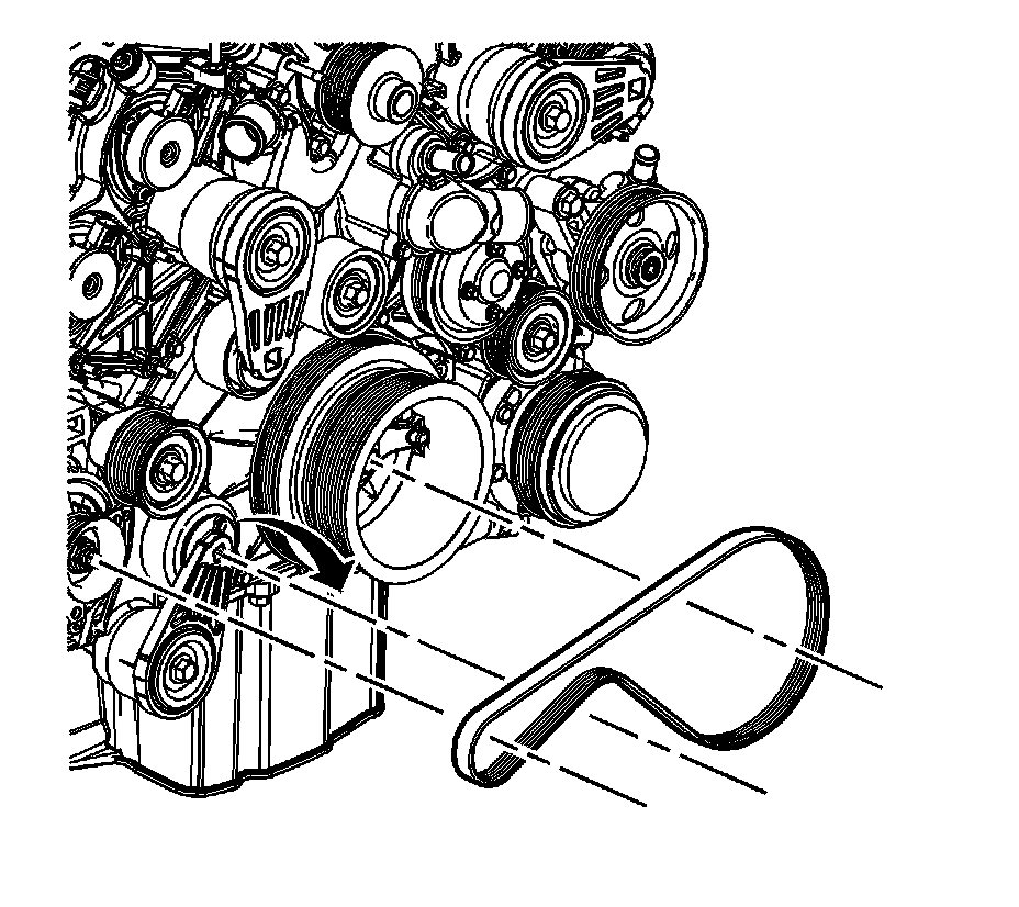 3. Route the inner drive belt around the crankshaft balancer inner pulley, the generator pulley and the inner drive belt tensioner pulley.