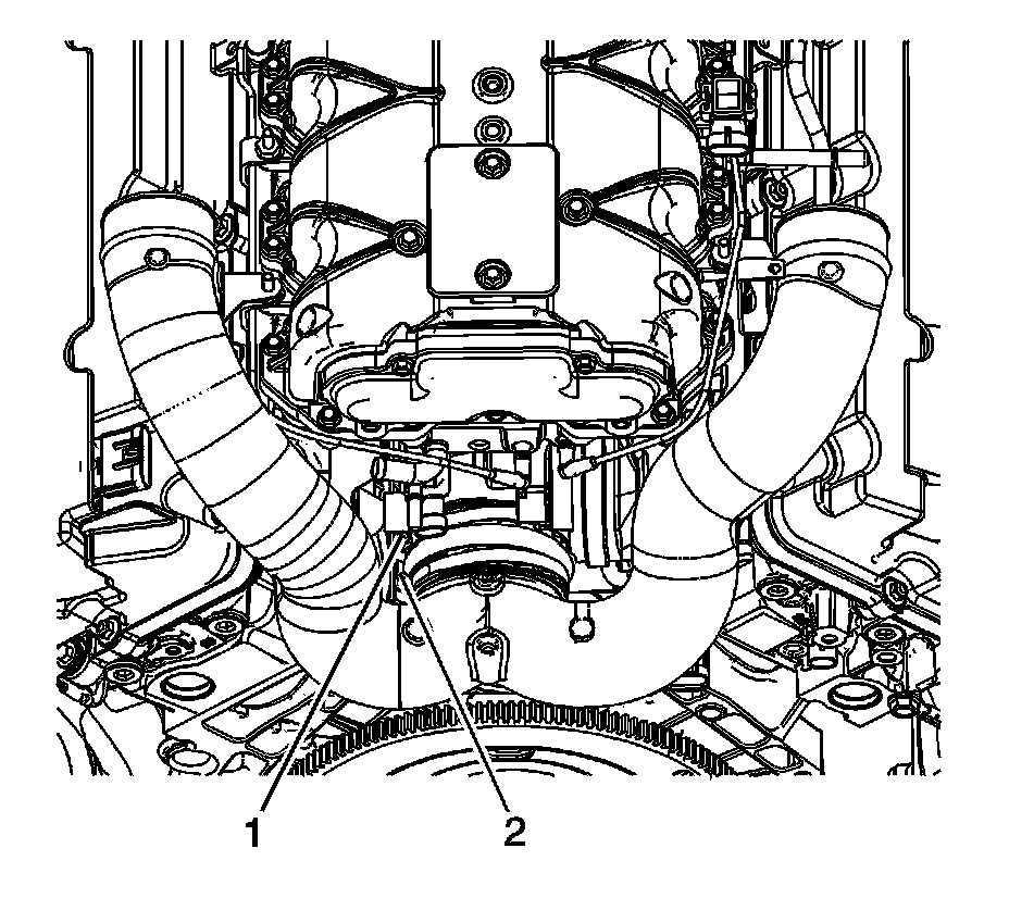 5. Tighten the rear screw clamp (2) on the throttle body duct seal to 3.25 Nm (29 lb in).