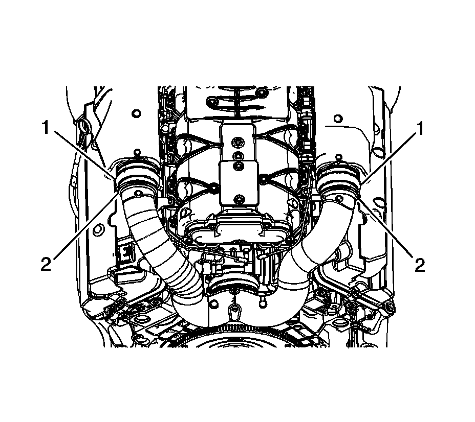 14. Tighten the rear screw clamps (2) on the inlet duct seals to 3.25 Nm (29 lb in).
