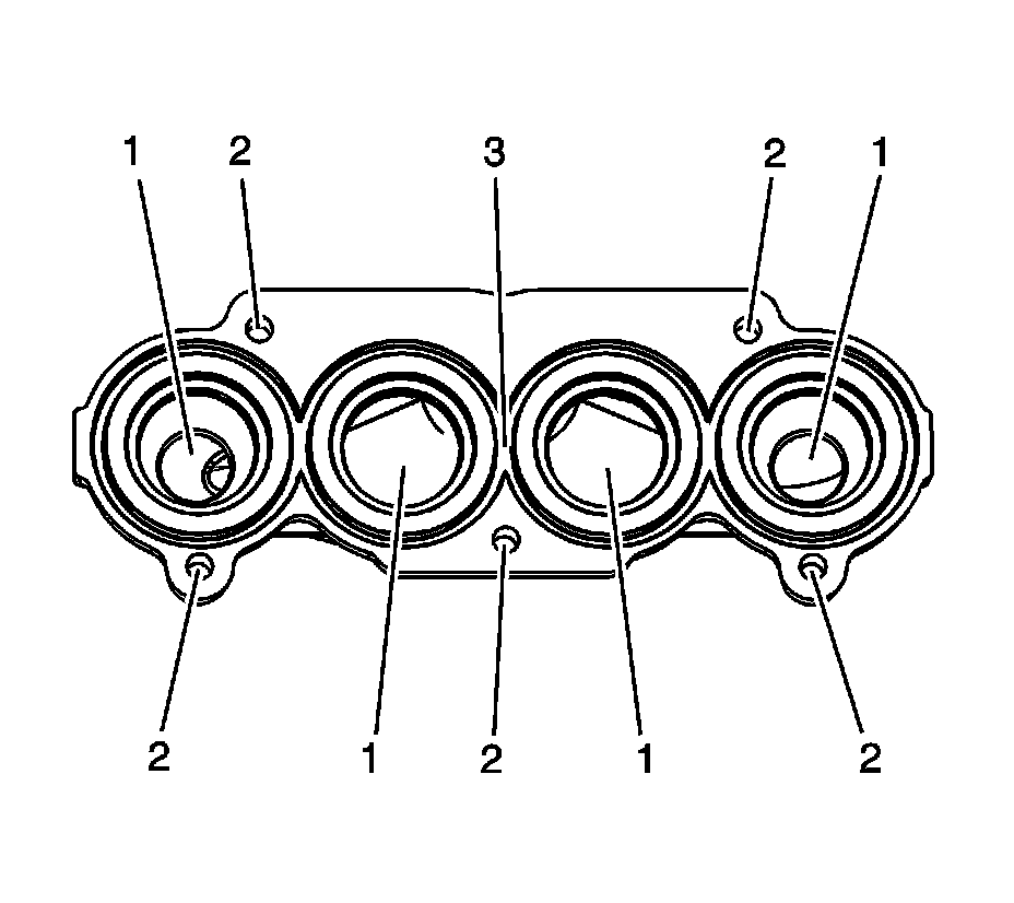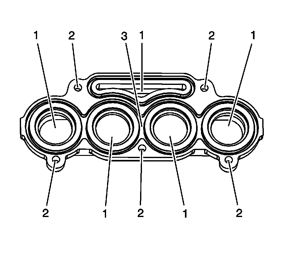 * Damage to the bore (2) for the charge air cooler housing expansion plug