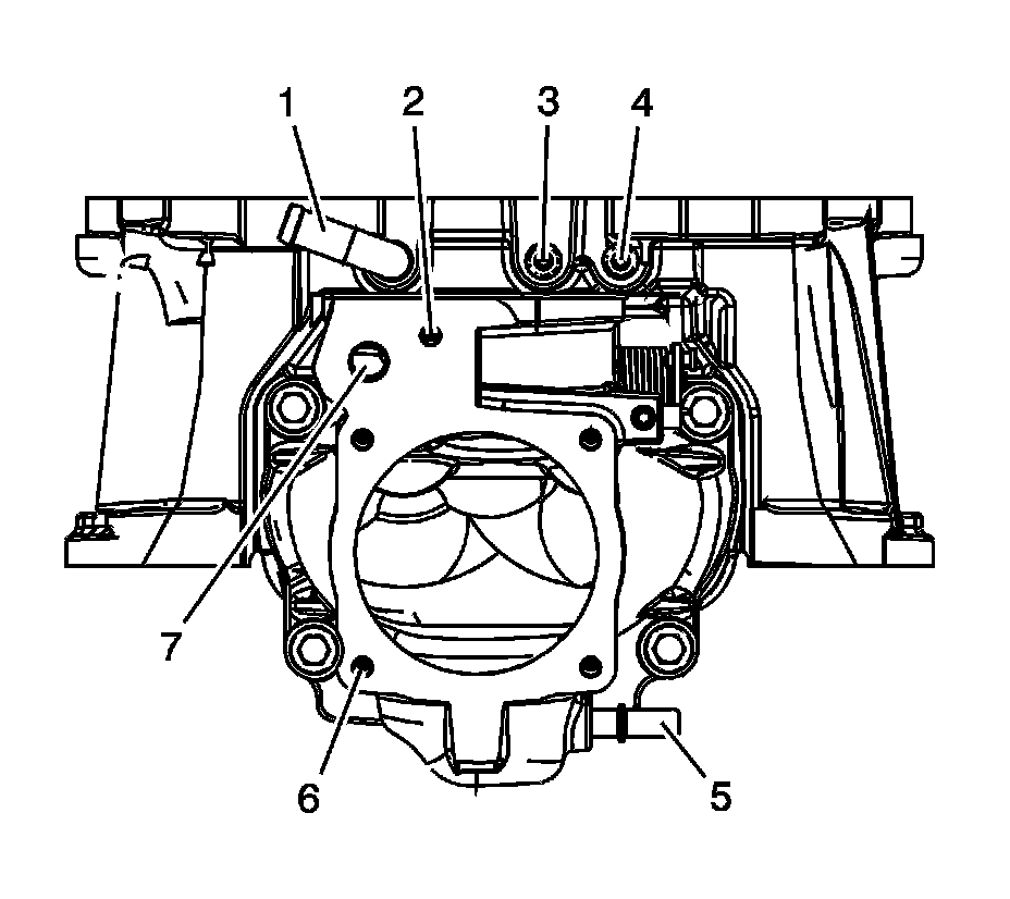 * Damage to the threaded holes (6) for the throttle body bolts