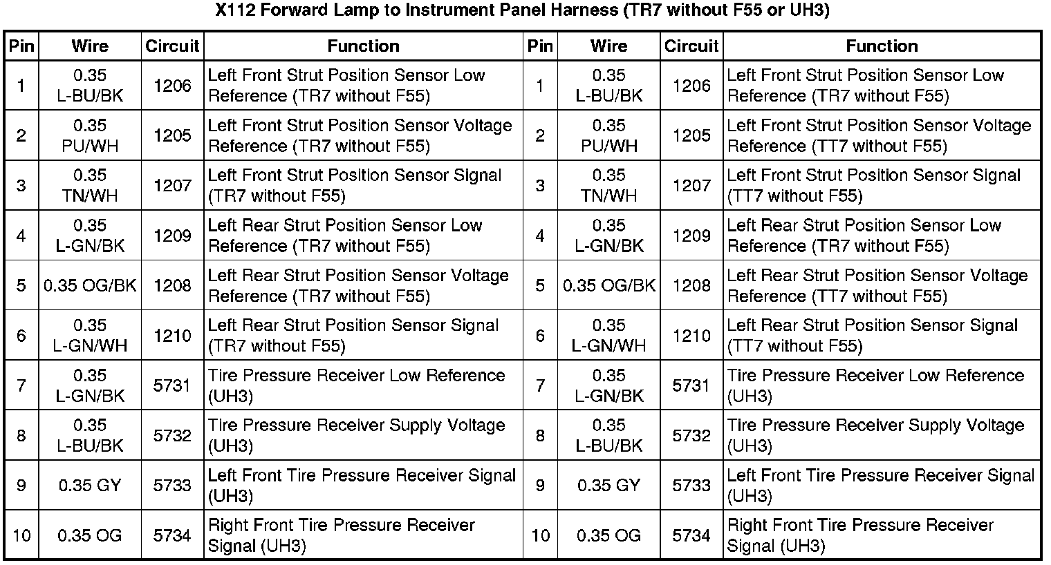X112 Forward Lamp to Instrument Panel Harness (TR7 without F55 or UH3)