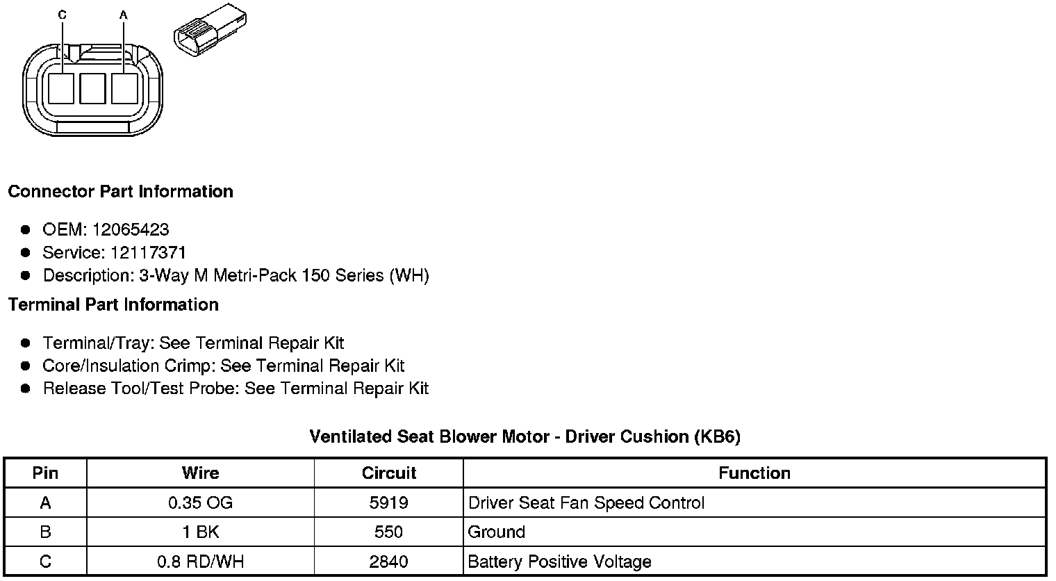 Ventilated Seat Blower Motor - Passenger Back (KB6)