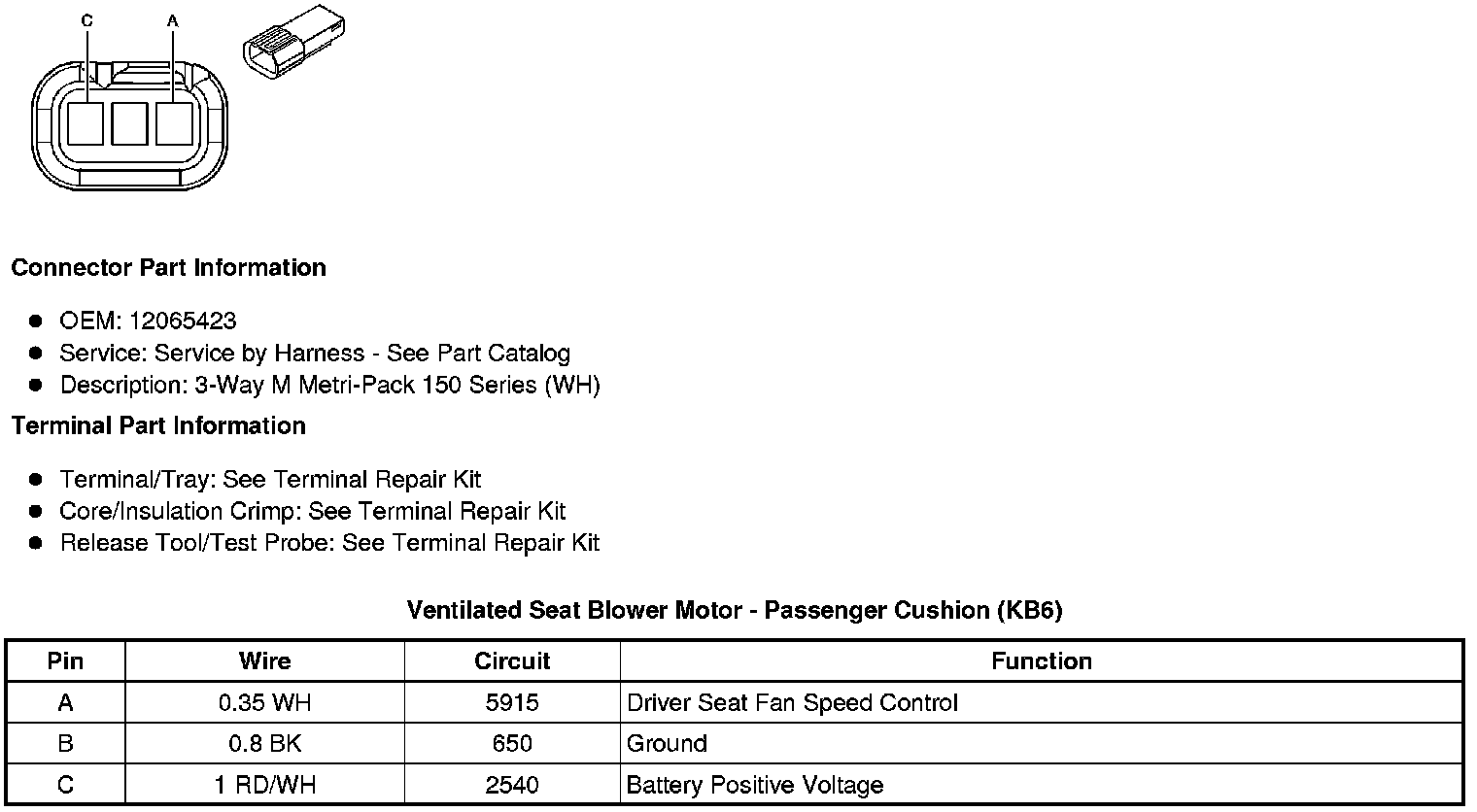 Ventilated Seat Blower Motor - Passenger Cushion (KB6)