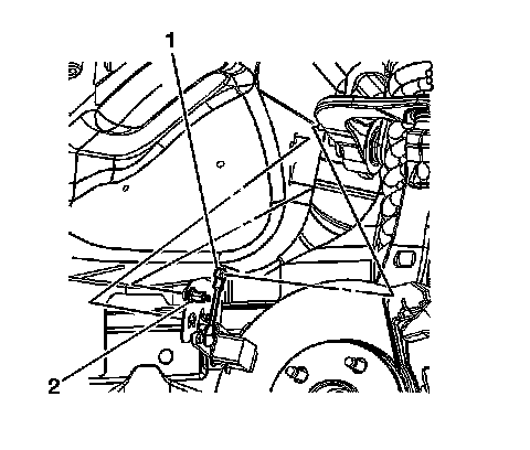 2. Install the bolt (2) to secure the sensor to the vehicle and tighten to 9 Nm (80 lb in).