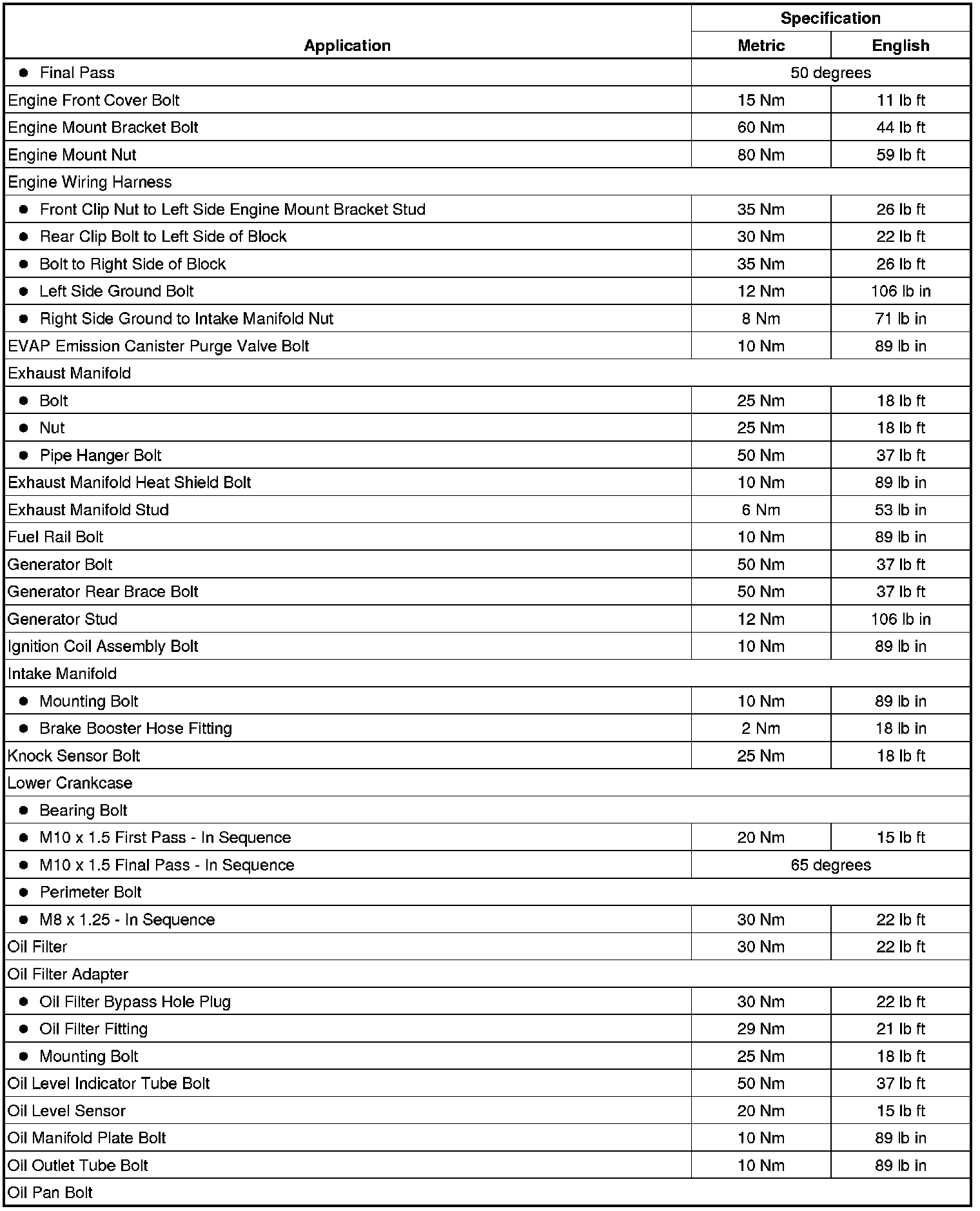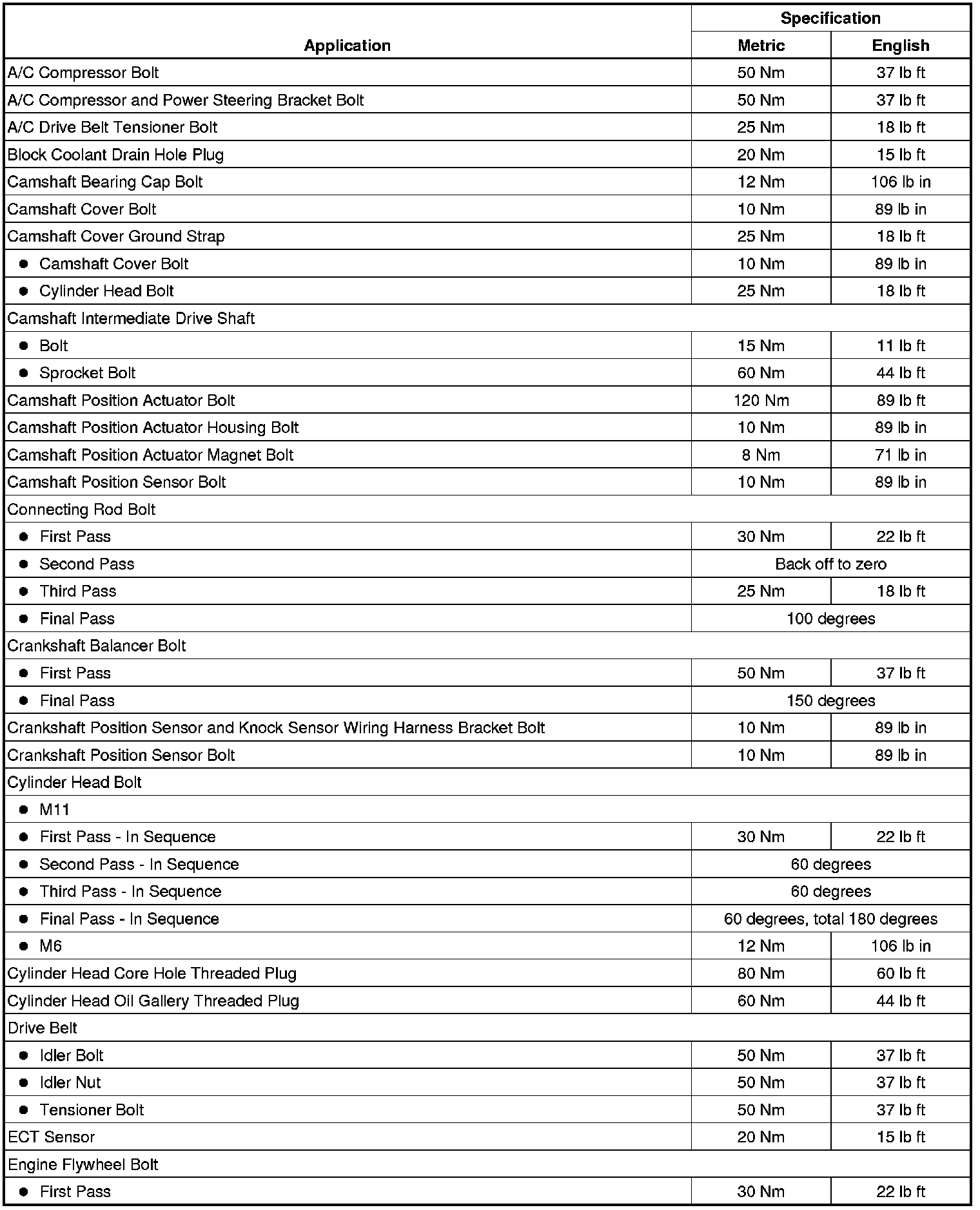 Fastener Tightening Specifications