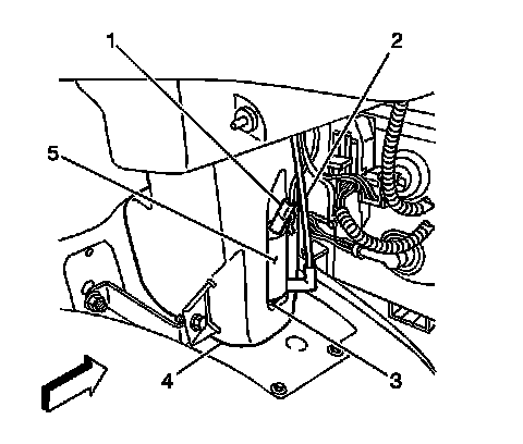 2. Disconnect the washer hose (2) from the washer pump (5).