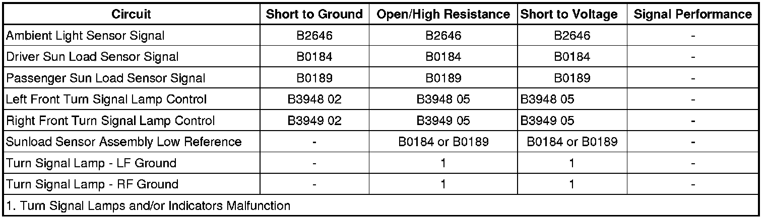 5. If all circuits test normal, replace the sun load sensor assembly.