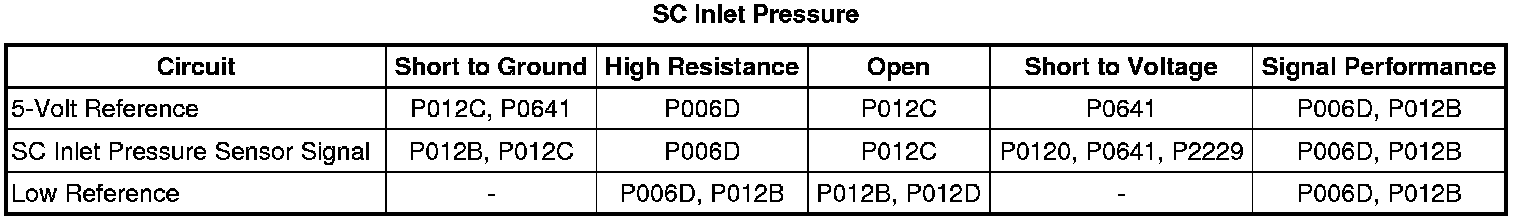 At idle the SC Inlet Pressure parameter represents the calculated difference between BARO and the reduced pressure that is present in the supercharger intake plenum as a positive value. At wide open throttle the SC Inlet Pressure parameter represents the calculated difference between BARO and the increased pressure that is present in the supercharger intake plenum, and should be very close to zero.