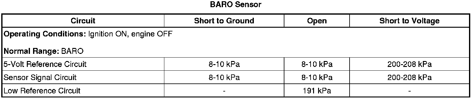 3. Use the observed MAP Sensor Scan Tool parameter that is closest to a value that is indicated in the first column.