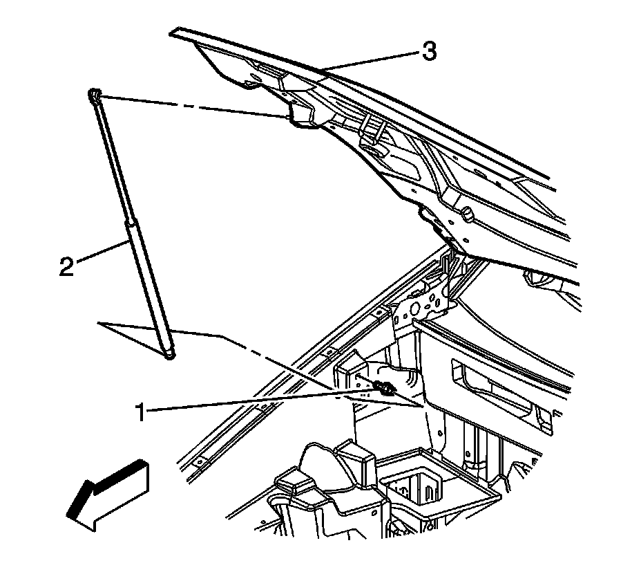 Caution: Apply pressure only at the end of the liftgate/hood assist rod that you are removing or attaching. Do NOT apply pressure to the middle of the rod because damage or bending will result.