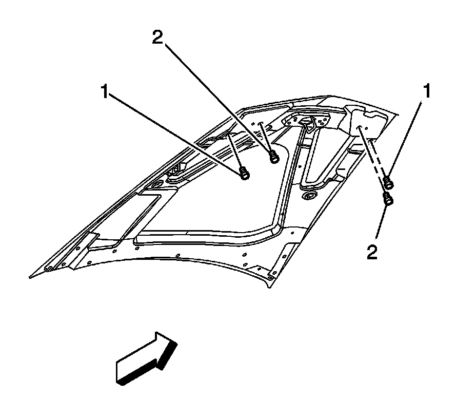 3. Remove the front hood bumpers (2) from the vehicle.