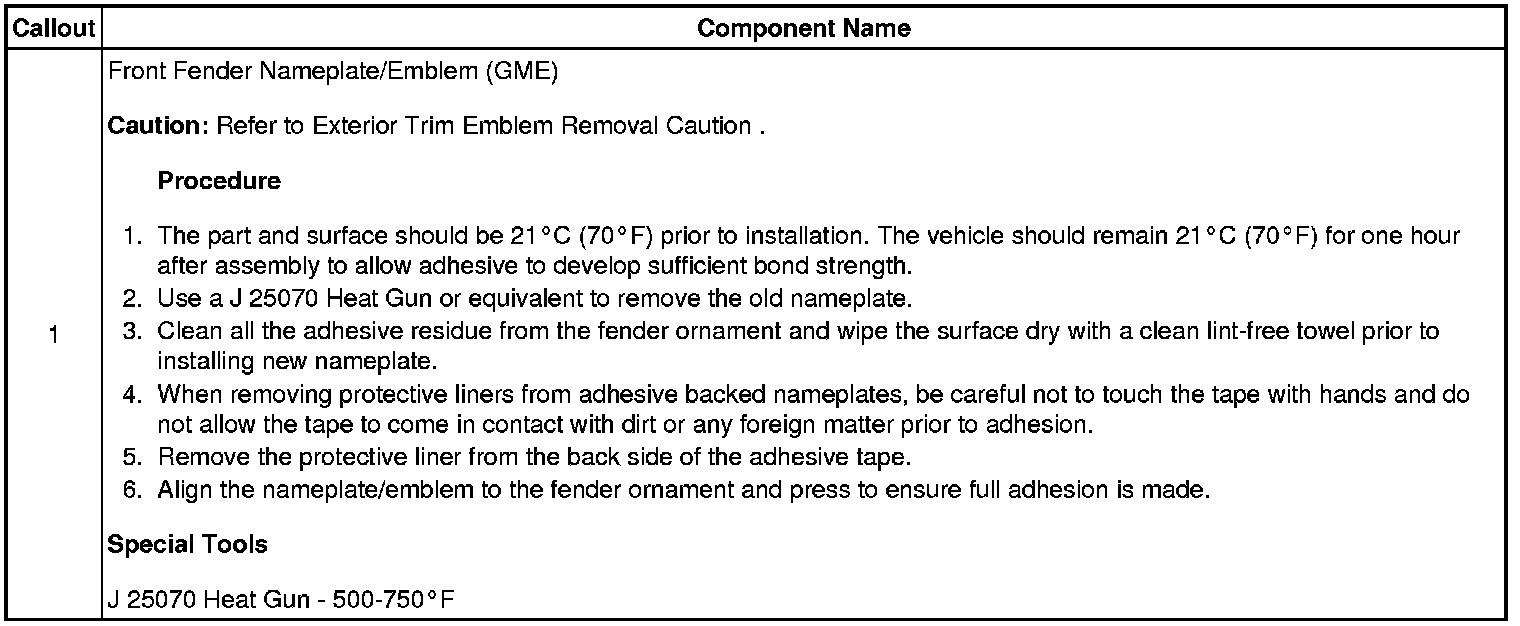 Front Fender Emblem/Nameplate Replacement (GME)