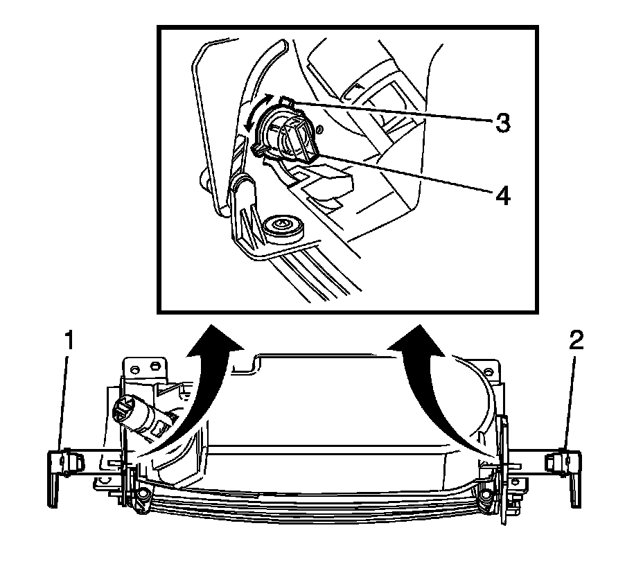 4. Remove the door dampeners (1, 2) by aligning the tab (4) to the opening (3) and pull outward.