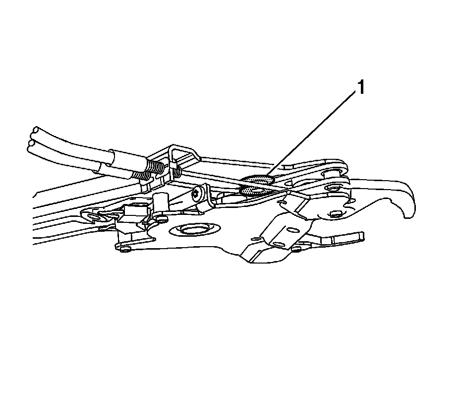 1. Remove the latch. Refer to Folding Top Front Latch Replacement (Folding Top Front Latch Replacement).