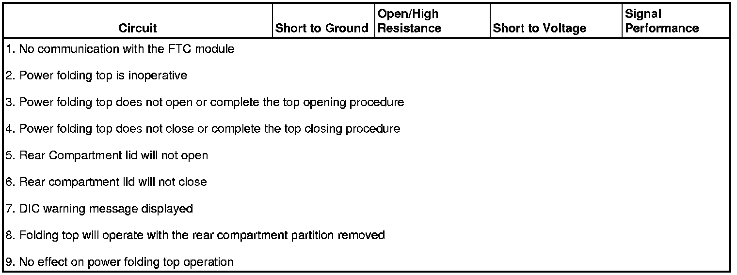 * Using the scan tool to access the History parameters for the folding top control (FTC) module, will display the last status of the items listed.