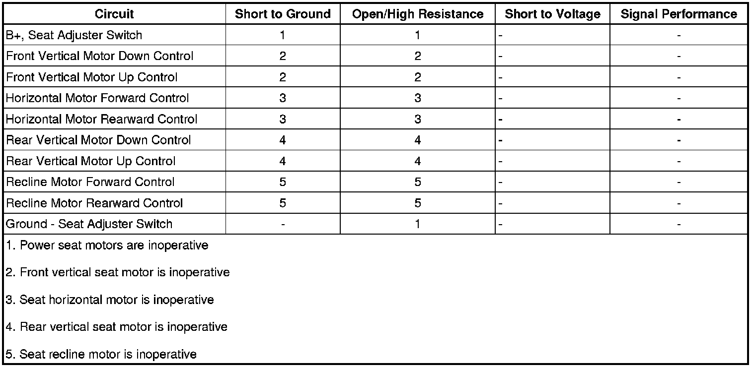 4. If all circuits test normal, test or replace the seat adjuster switch.