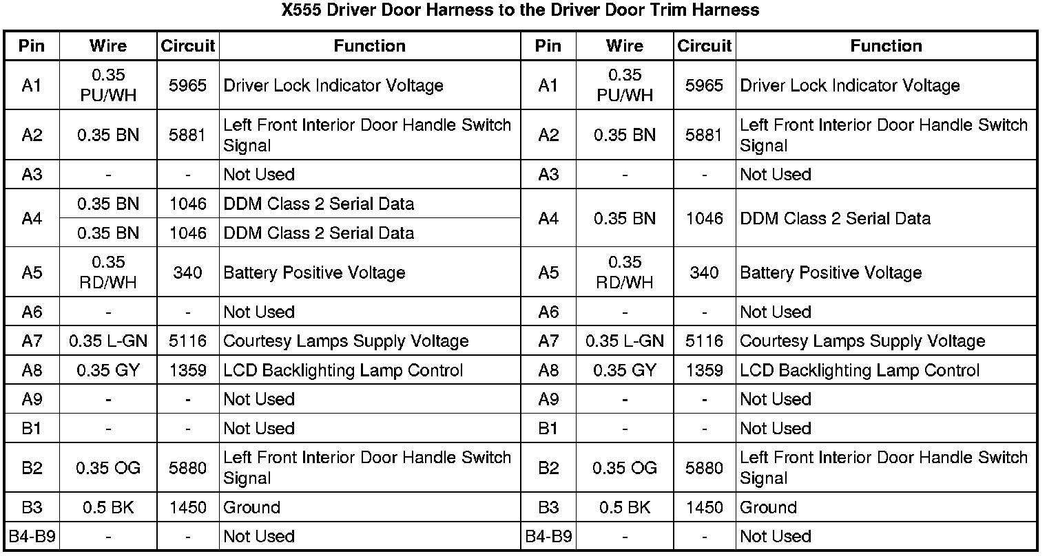 X555 Driver Door Harness to the Driver Door Trim Harness