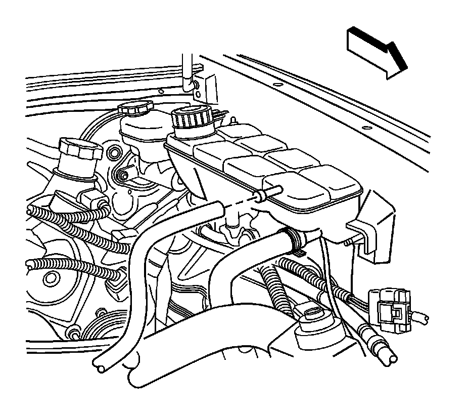 4. Disengage tension on the surge tank outlet hose clamp using the J 38185 .