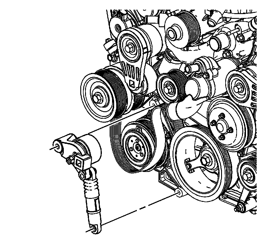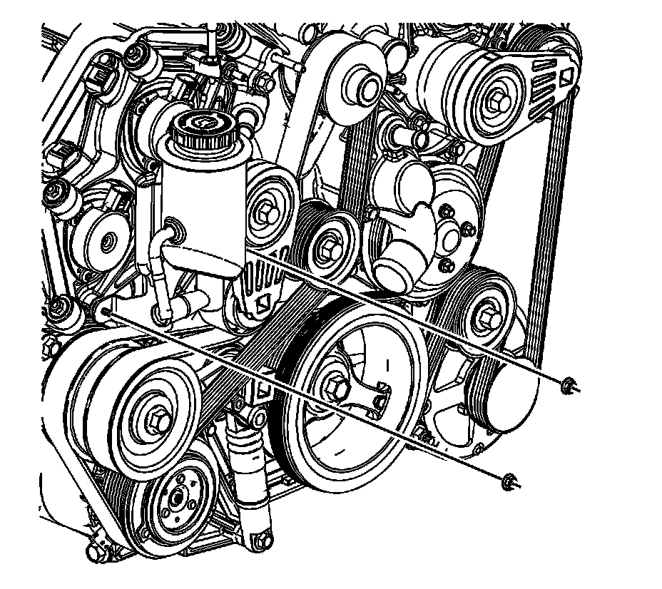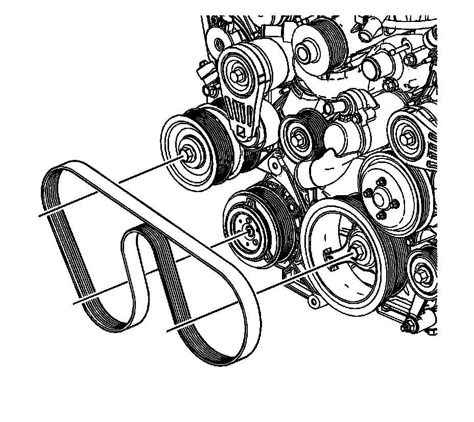 12. After installation, inspect the A/C compressor and power steering pump drive belt for proper routing and the correct alignment.