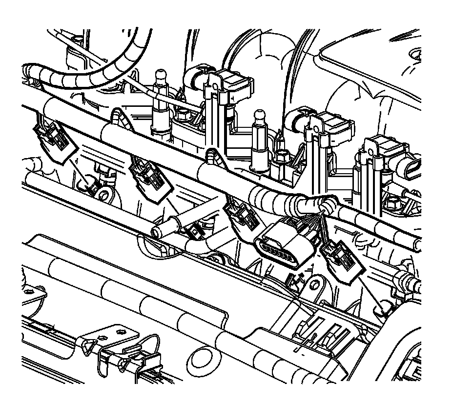 9. Disconnect the engine wiring harness from the right side fuel injectors.