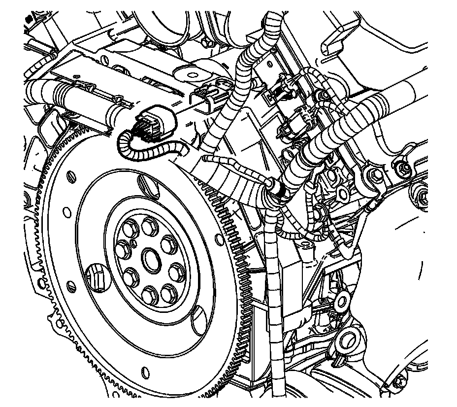 11. Disconnect the engine wiring harness from the knock and crankshaft position sensor wiring harness.