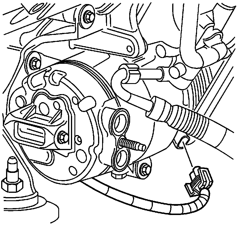 1. Disconnect the engine wiring harness from the air conditioning compressor.