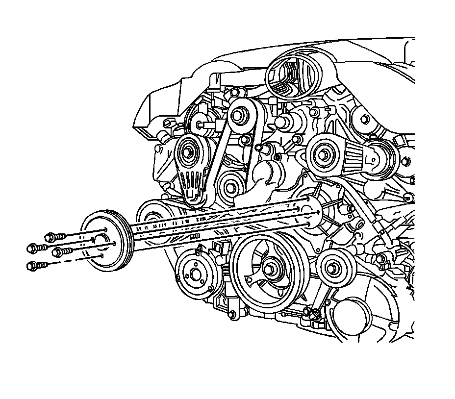 3. Remove the water pump drive belt. Refer to Water Pump and Generator Belt Replacement (Water Pump and Generator Belt Replacement).