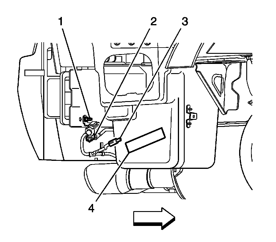 4. Install the vacuum tank to the vehicle in the location shown (4). Ensure that the vacuum line will reach the vacuum tank.