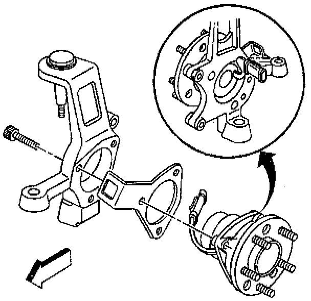 1. Install the hub and bearing assembly into the steering knuckle.
