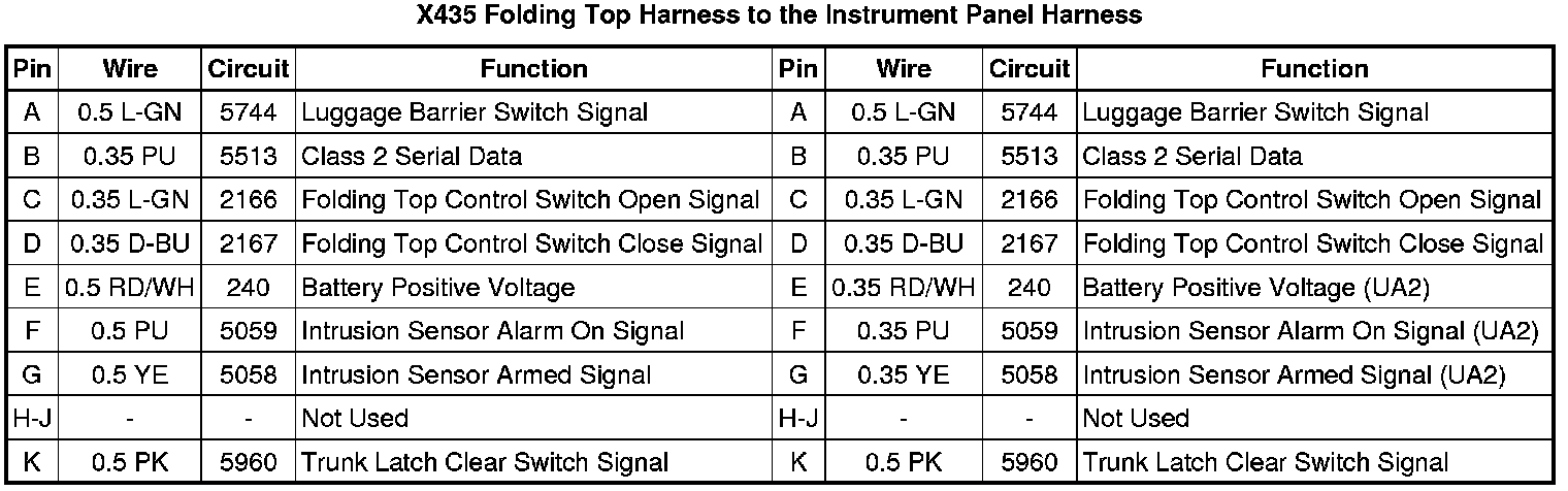 X435 Folding Top Harness to the Instrument Panel Harness