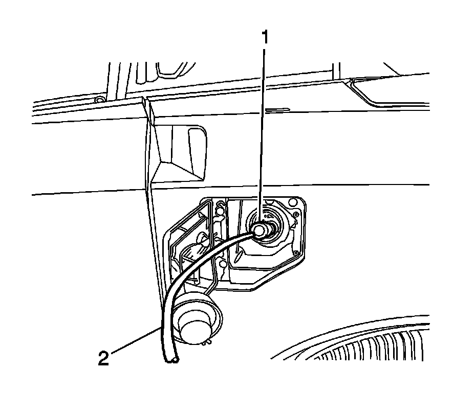 2. Install the J 42960-2 (1) into the fuel fill pipe in order to hold the door open.