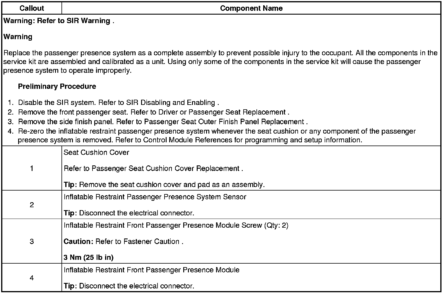 Inflatable Restraint Passenger Presence System Replacement - Front