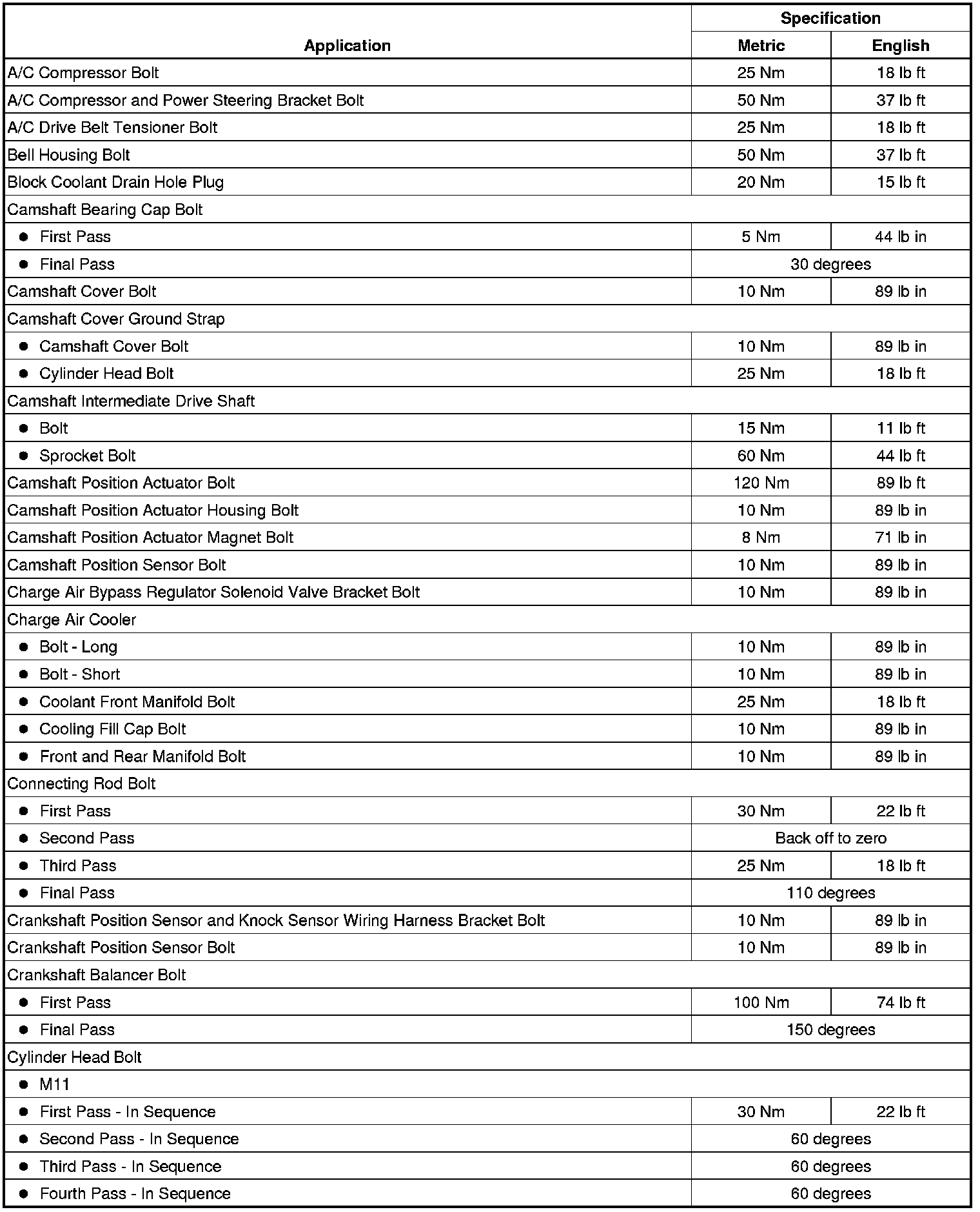 Fastener Tightening Specifications