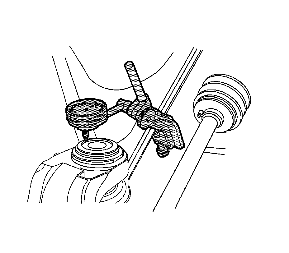 7. If the dial indicator reading is more than 0.12 mm (0.005 in), replace the steering knuckle. Refer to Steering Knuckle Replacement (Front Suspension).