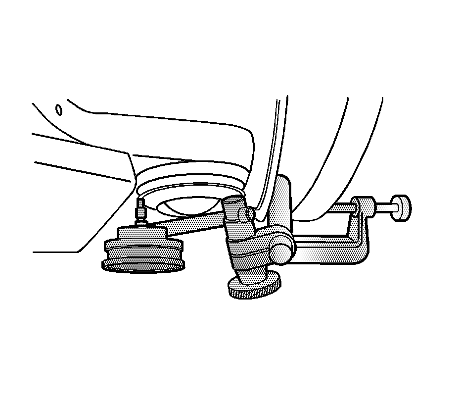 4. Install J 8001 or a suitable dial indicator in a way to measure vertical lash in the ball joint.
