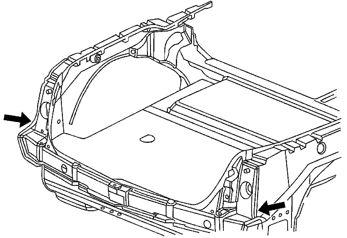 Seal the area of the rear compartment lid inner and outer panels at the outer most vertical seam (between arrows either side). The seam is on the inside of the rear compartment lid. Refer to the illustration above. Use Kent Seam Sealer, P/N P10200, to seal the seam for best appearance.