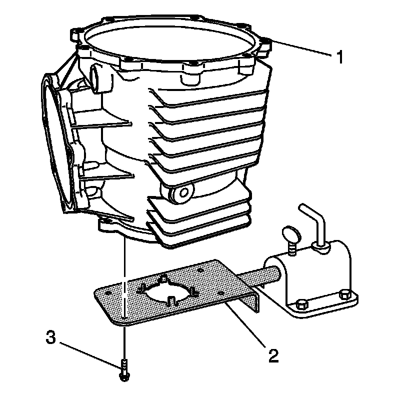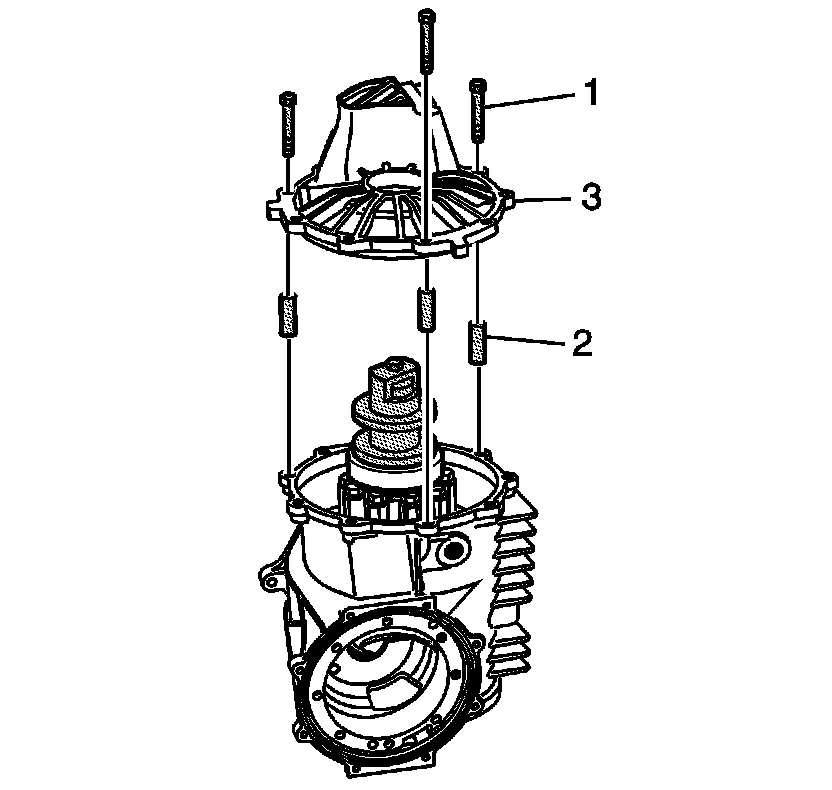 29. Install the right cover (3) and J 42168-16 bolts (1) and spacers (2) to the differential. Position the J 42168-16 bolts and spacers evenly apart and tighten to 28 Nm (20 lb ft).