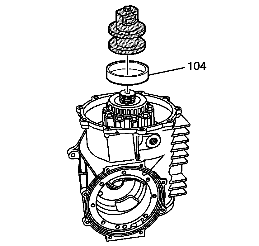 32. Install the selected shim (103) and bearing cup (104) to the right cover.