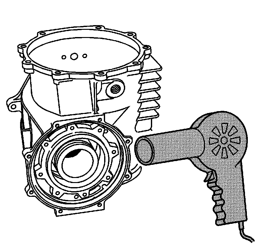 14. Using the J 25070 , heat the differential housing around the pinion cartridge. Heating the housing will ease in pinion removal.