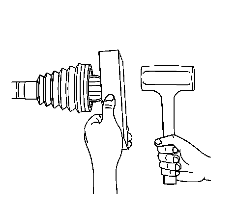 7. Using a hammer and a block of wood, drive the inner race onto the axle shaft.