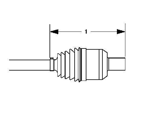 26. Measure the distance (1) 224-228 mm (8.82-8.98 in) between the end of the boot and the end of the joint outer race and adjust the plunging motion of the joint accordingly.